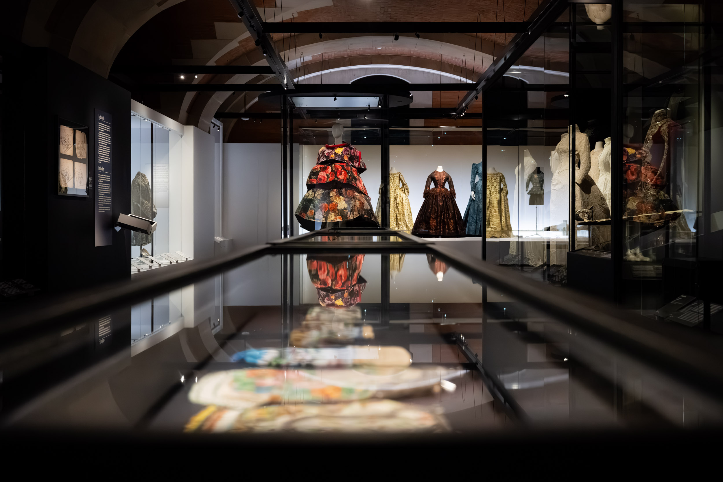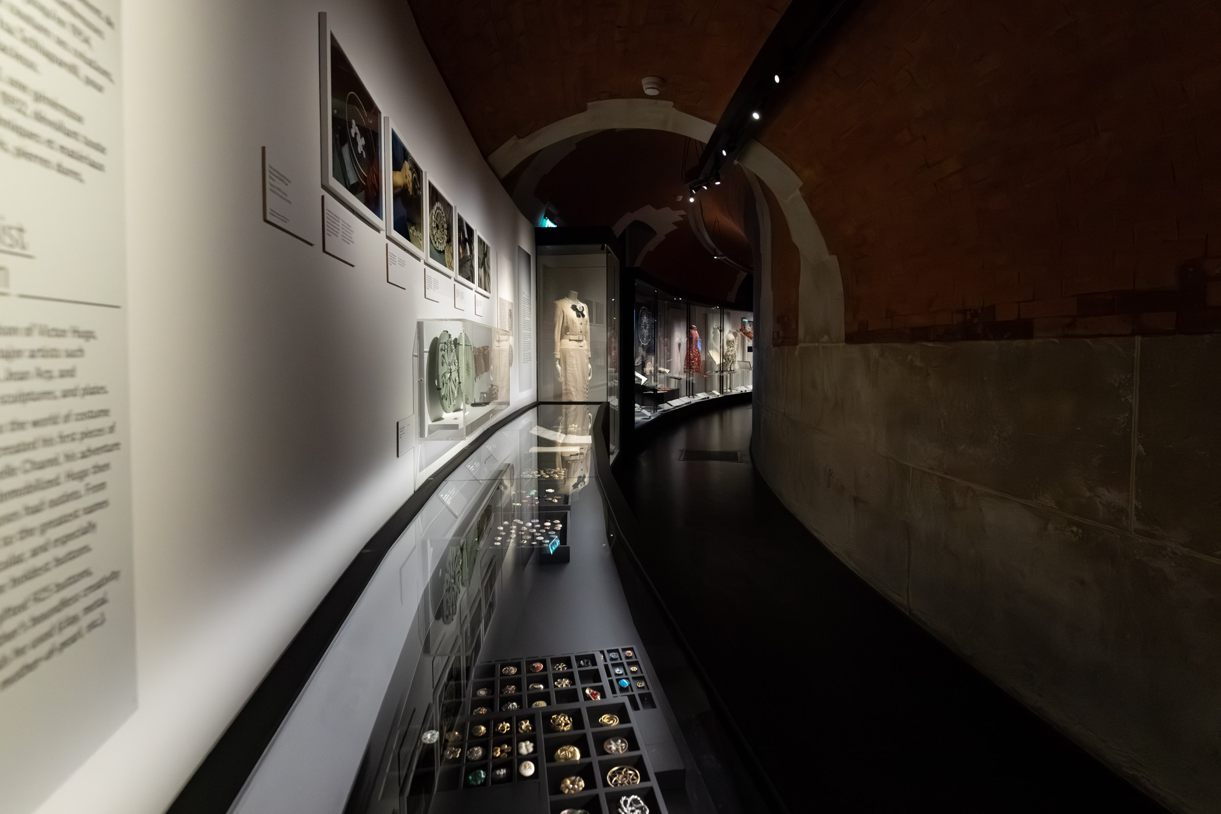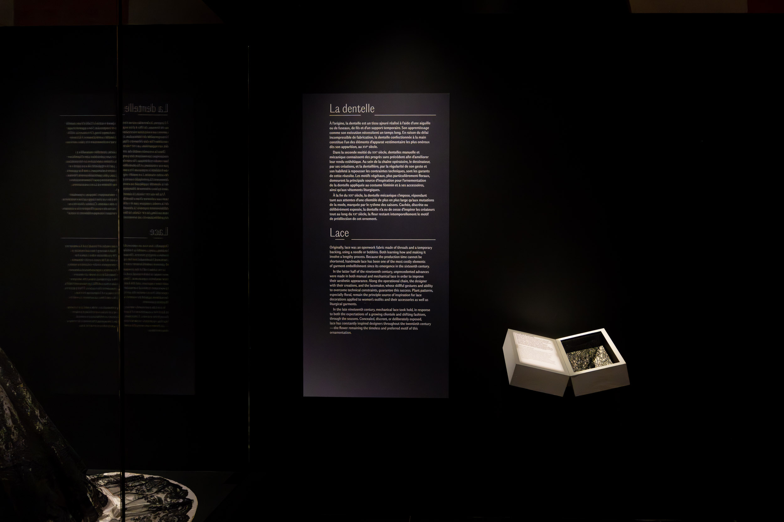 Réhabiliter l’exposition. L’exercice est ici poussé à son paroxysme avec un objectif de réemploi et de réadaptation à 95% ; cent serait chimérique. La connaissance des lieux et des montages d’expositions précédentes a permis de créer des ponts entre toutes les possibilités. Tout cela n’est pas (dé)montré ostensiblement au public, et c’est là que réside le lien avec le thème de l’exposition, le Savoir-Faire : Développer ce qui ne se voit pas sauf pour celui qui a déjà visité la Mode en Mouvement et qui aura cette impression de déjà-vu mélangé à un changement; changement net par la luminosité et les touches de couleurs ; déjà-vu par la conservation de la structure existante. Ainsi, tous les grands éléments de constructions sont conservés et adaptés, et de petits mobiliers sont récupérés de précédentes expositions. La réadaption ne peut se faire sans l’intelligence du groupe, les artisans de l’ombre qui œuvrent pour un travail précis et précieux. Au-delà, le point commun se poursuit dans la transmission : imaginer la suite. Permettre une vraie souplesse pour que l’exposition puisse vivre ses futures rotations sereinement, sans modifications majeures. Conserver, adapter, transmettre.